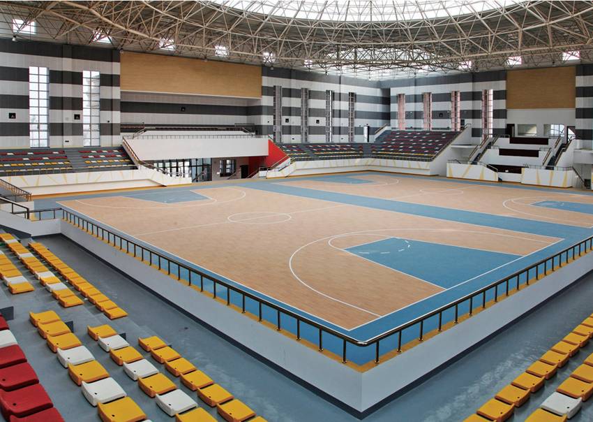 El diseño ergonómico del borde de arco de textura circular irregular en la superficie del piso hace que el coeficiente de deslizamiento sea el mejor valor, lo que hace que los atletas tengan una mejor capacidad de actividad, y es una técnica profesional para comenzar, saltar, deslizarse, frenar, etc. La acción proporciona una estructura de energía elástica altamente explosiva.